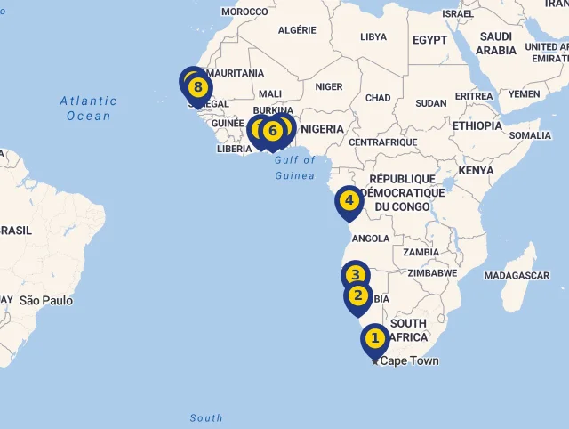6Takoradi, Ghana24. 04. 2027, připlutí v 08:00, odjezd v 19:00