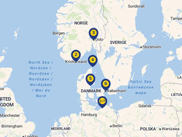 Poznejte místa, kde Vaše loď během plavby zakotví! Každá zastávka je označena číslem, které odpovídá její pozici na mapě, abyste mohli snadno sledovat celou trasu. Stačí kliknout na vybranou destinaci a zjistíte více o každé z nich. Pro lepší přehled si můžete celý program plavby prohlédnout přímo na mapě.