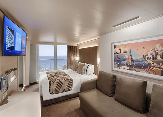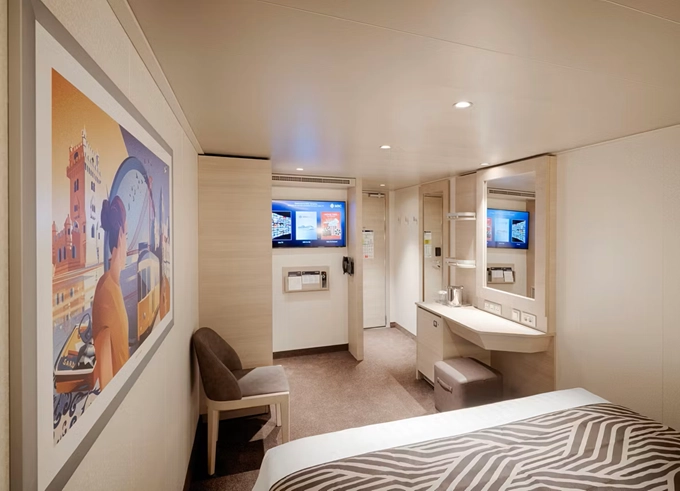 - ubytování v plně vybavené kajutě: vlastní koupelna se sprchou a WC, interaktivní TV, telefon, trezor, vysoušeč vlasů, regulovatelná klimatizace, minibar (za poplatek), Wi-fi (za poplatek)