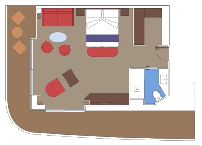 Vztahuje je se k typům a kategoriím kajut: s balkónem BA a apartmány Suites SD, SXJ, SXT, SX, SLJ, SLW, SLT, SLP, SLS, SL2, SL1, SRS, SRP, SR2, SR1, SM, VLA