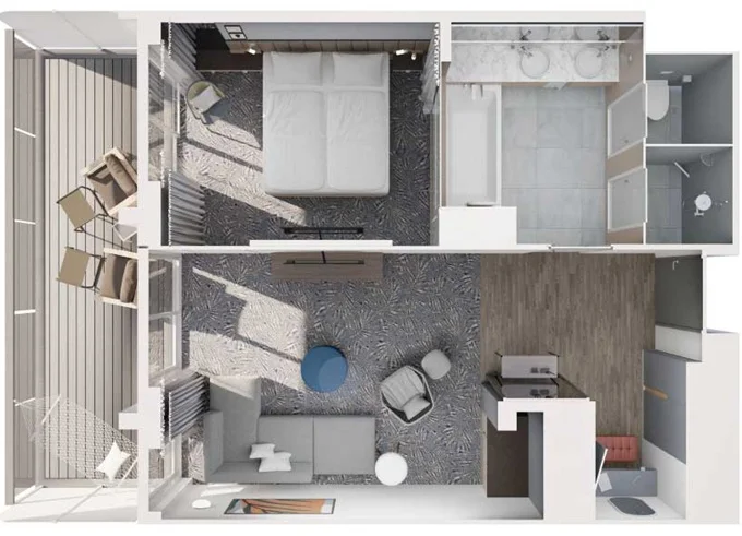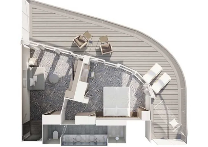 | SUFO - Fernweh Suite kat. A 28-38 m² + balkon 34 m² se stolem, lehátky a houpací sítí. 14. paluba. Max 4 osoby. Výhody Suite. | 322 974 Kč 80 743 Kč za osobu | ||